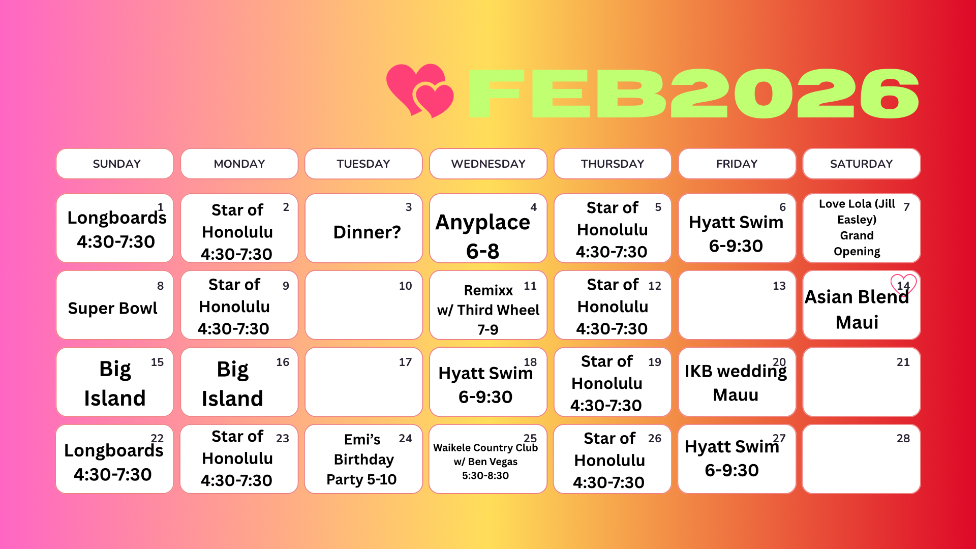 February calendar